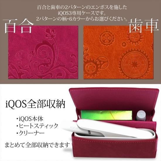 ご注意・免責 ※必ずお読みください※ 「IQOSはフィリップモリスプロダクツS.A.が所有する商標です。この小売業者又は広告主はフィリップモリスプロダクツS.A.とは全く関連がなく、フィリップモリスプロダクツS.A.の代表者又は代理人ではありません。 販売され又は広告されている純正IQOS製品又はアクセサリーに該当しない一切の製品又はアクセサリーは、フィリップモリスプロダクツS.A.の推奨、精査又は支持を一切受けておらず、当該製品に関する一切の責任は当該製品の販売業者、流通業者、製造業者にあります。」■商品説明 ※ IQOS 3 DUO(デュオ) 対応可 ・アイコス3本体、ヒートスティック1箱、クリーナーがこれ1つに収納できるからとっても便利。 ・マグネット式のフタを開ければヒートスティックやホルダーをそのまま取り出せます。 ・専用設計なので、ケースに入れたままの充電も可能に。 ・カラビナ付きなので、バッグやベルトループに付けておしゃれに持ち歩くこともできます。 ・エンボスのデザインとカラーをお選び頂けますので、お好みの組み合わせがきっと見つかります。 ■注意 ※iQOS3本体及びヒートスティック等は付いてきません。ケースのみの販売です。 ※お使いのPCモニターやご覧の端末設定により、実際のカラーと違って見える可能性がございます。