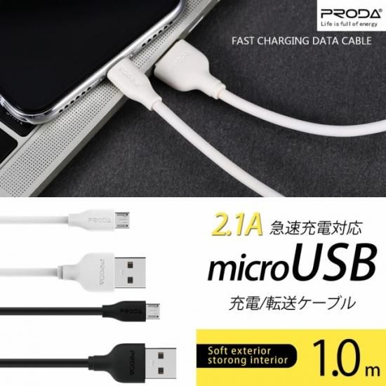 REMAX リマックス スマホ microUSB 急速充電 転送ケーブル 2.1A 1.0m PRODA Fast Charging Cable ホワイト PD-B15m
