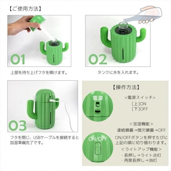 加湿器 卓上 超音波 サボテン USB 給電式 ミスト加湿器 340ml ライトアップ 卓上加湿器 オートストップ ミニ加湿器 【宅配便のみ】