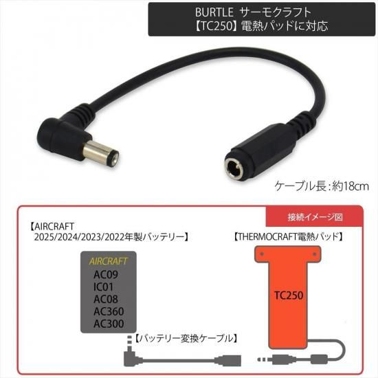 電熱パッド BURTLE バッテリー変換ケーブル バートル製 サーモクラフト THERMO CRAFT 防寒ベスト ヒーターベスト TC250 AC09【CV-D】