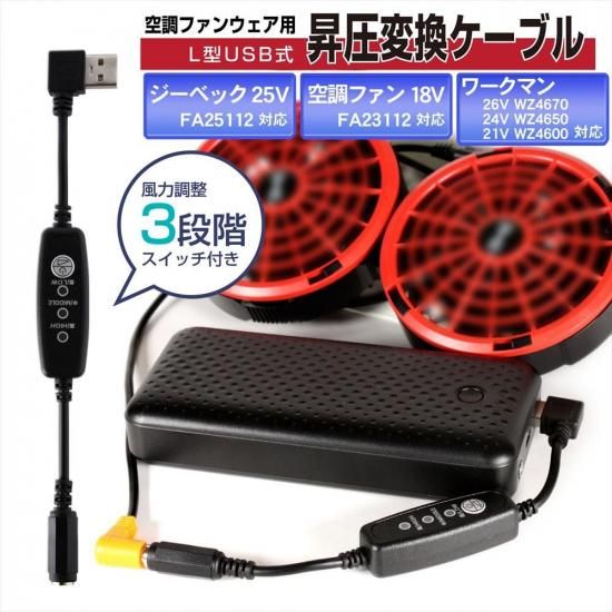 12V USB昇圧 アダプター L型 ジーベック 25V FA25112 18V FA23112 ワークマン WZ4670 WZ4650 空調ウェア ファン付き作業服 スイッチ付き 【12V-C】