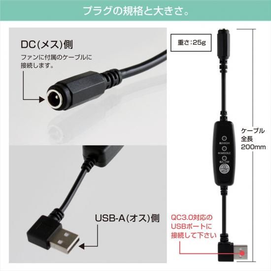 ■ご注意 ※必ず対応したファン・ケーブルをご使用ください。 ※必ずQC3.0(クイックチャージ3.0)に対応したモバイルバッテリーをご使用ください。 お手持ちの製品をよくご確認いただき購入をお願いいたします。 ※違うサイズのプラグを差し込むとショートする恐れがありますのでくれぐれもサイズをご確認ください。 ※本品にはモバイルバッテリー/ファン/ケーブルは付属いたしません。 ※イメージと違ったなどの理由での交換等はお受けできません。 ※当商品をご使用の上で、間違ったご使用方法などで生じた損害等に対して当社では一切の責任を負いません。ご了承下さい。 ※ロットにより、色・デザイン等若干変更される場合がございます。 ※準備が出来次第なるべく早めの発送を心がけております。 最近チェックした商品