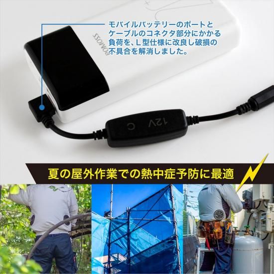 12V USB昇圧 アダプター L型 サンエス対応 DC12V ファン付き作業服 QC3.0 モバイルバッテリー Quick Charge 3.0 スイッチ付き 【12V-C】