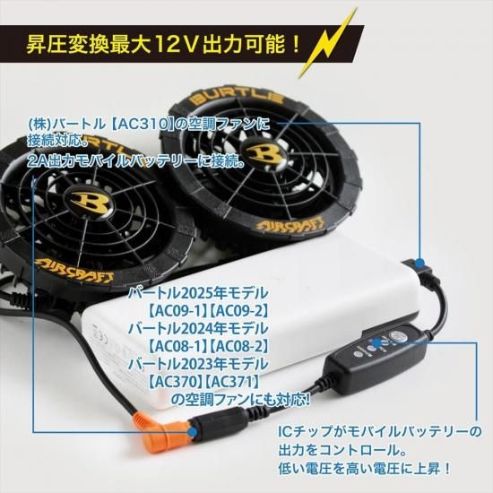 12V USB昇圧 アダプター バートル対応 2025年モデル AC09-1 AC09-2 2024年 AC08-1 AC370 QC3.0 モバイルバッテリー スイッチ付き 【12V-C】