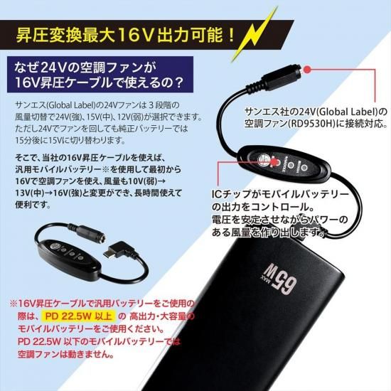 サンエス対応 24V RD9530H Global Label 16V Type-C昇圧 アダプター L型 Type-C PD対応 モバイルバッテリー スイッチ付き 【16V-C4】
