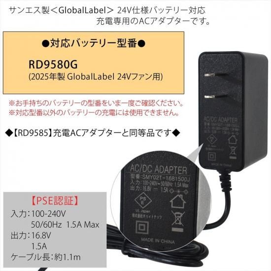 サンエス製 RD9580G バッテリー対応 AC充電アダプター RD9585 充電器 同等品 2025年製 24V Global Label ファン付き作業服 PSE 【16.8V-1.5A】