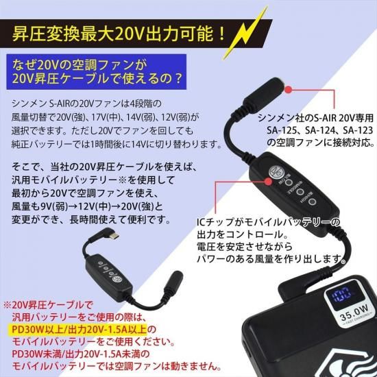 シンメン S-AIR 対応 2025年モデル 20V SA-125 SA-225 Type-C昇圧 アダプター PD対応 20V L型 モバイルバッテリー スイッチ付き 【20V-C】