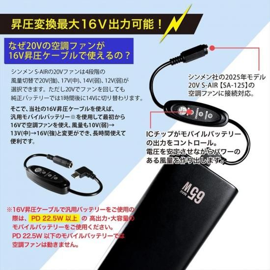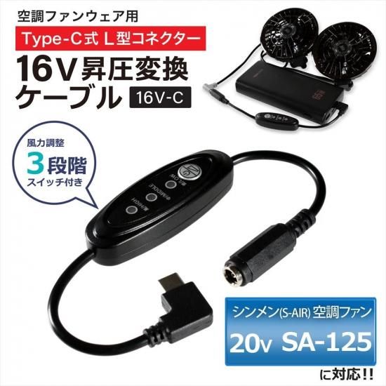 シンメン S-AIR 対応 2025年モデル 20V SA-125 SA-225 Type-C昇圧 アダプター 16V L型 PD対応 モバイルバッテリー スイッチ付き 【16V-C】