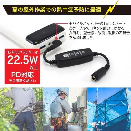 15V Type-C昇圧 アダプター L型 村上被服 鳳凰 HOOH 対応 28V V2802 Type-C PD対応 モバイルバッテリー ファン付き作業服 スイッチ付き 【15V-B】