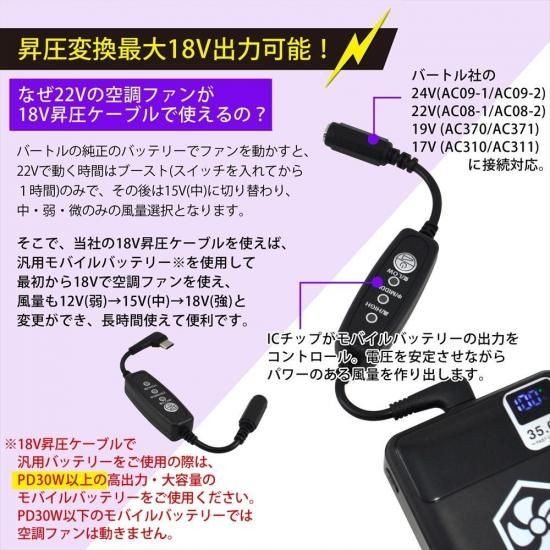 Type-C昇圧 アダプター バートル対応 24V AC09-1 22V 19V Type-C PD対応 モバイルバッテリー ファン付き作業服 スイッチ付き 【18V-C】