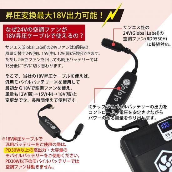 サンエス対応 24V RD9530H Global Label 18V Type-C昇圧 アダプター L型 Type-C PD対応 モバイルバッテリー スイッチ付き 【18V-C4】