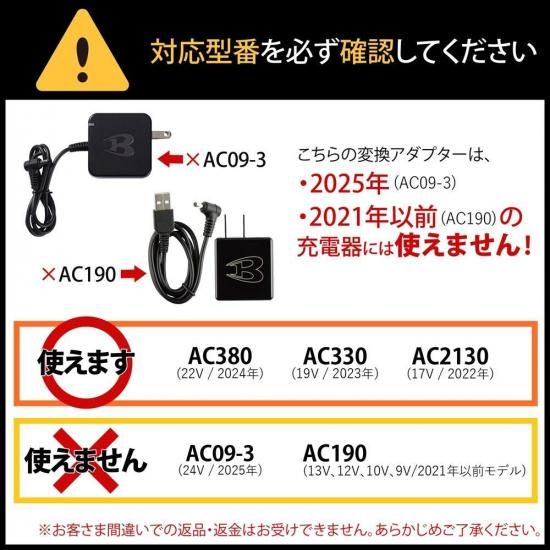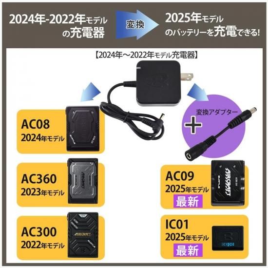 バートル製充電器 対応 変換アダプター AC380 AC330 AC2130 充電器対応 2025年モデル AC09 IC01 バッテリー対応 BURTLE AIRCRAFT