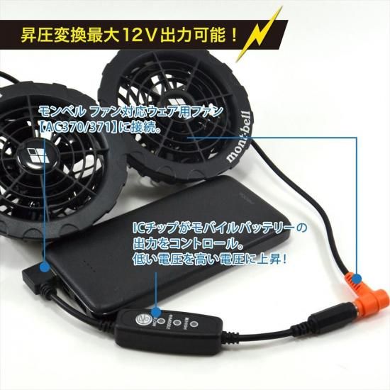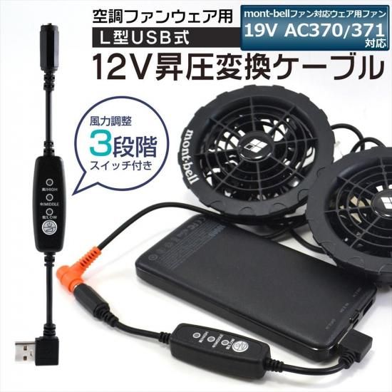 モンベル ファン対応ウェア用ファン 対応 19V AC370/371 12V USB昇圧 アダプター QC3.0 モバイルバッテリー スイッチ付き 【12V-C】